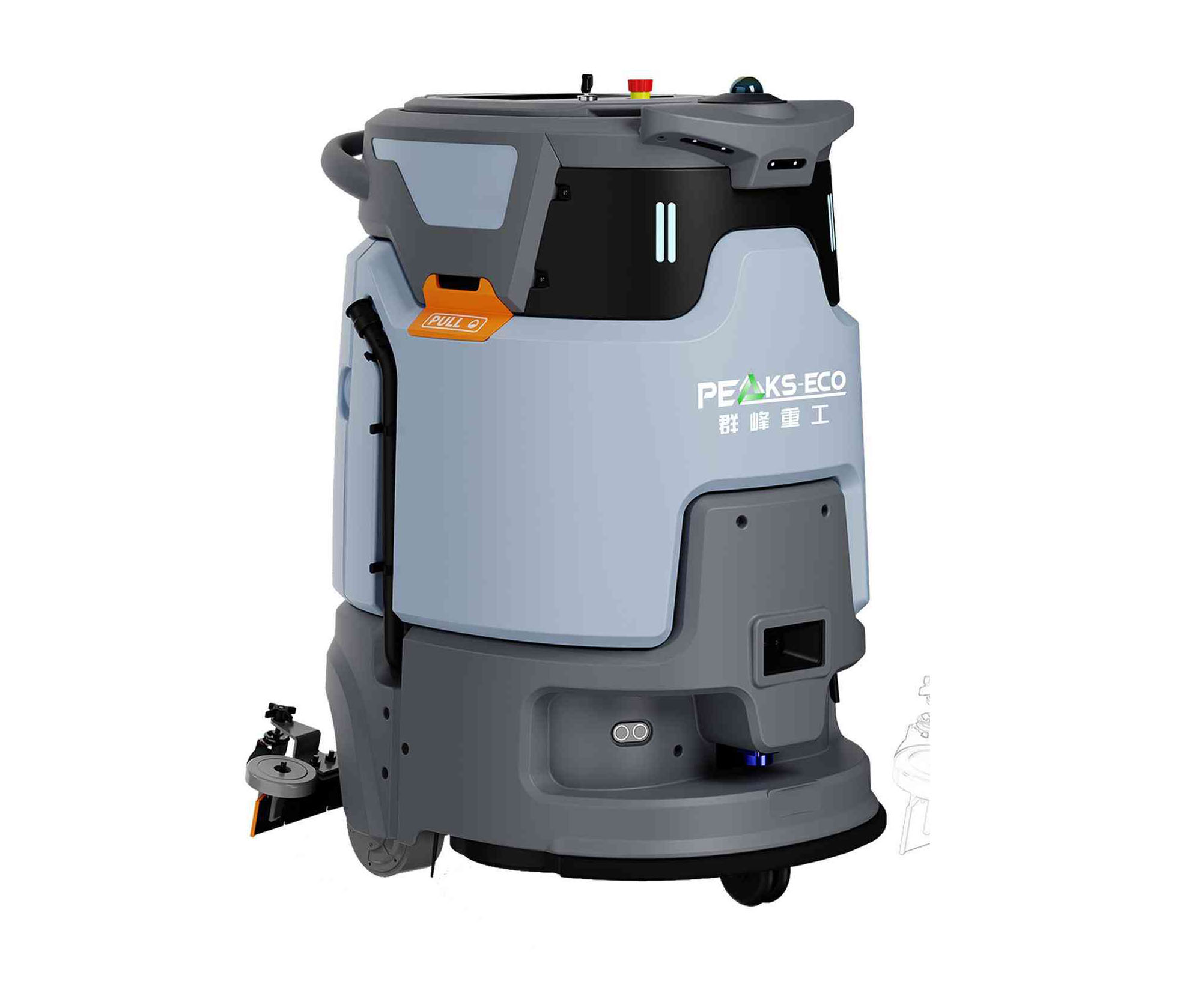 大型商业及工业环境清洁全能手,基于 3D 激光 +2D 激光+视觉+超声+触边+防跌落等的多传感器融合技术,全景式感知周围环境态势,全方位保障人、车、物的安全。手机APP实时显示云端运维平台全方位守护运行记录自动生成定制化报表。
